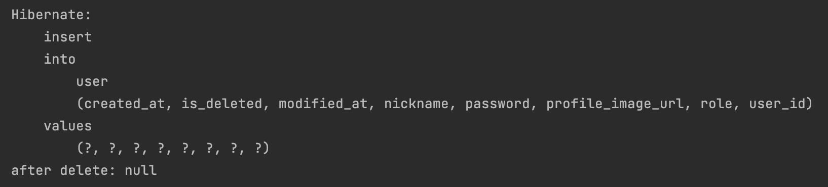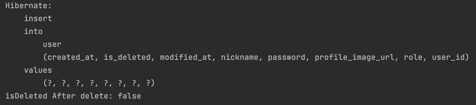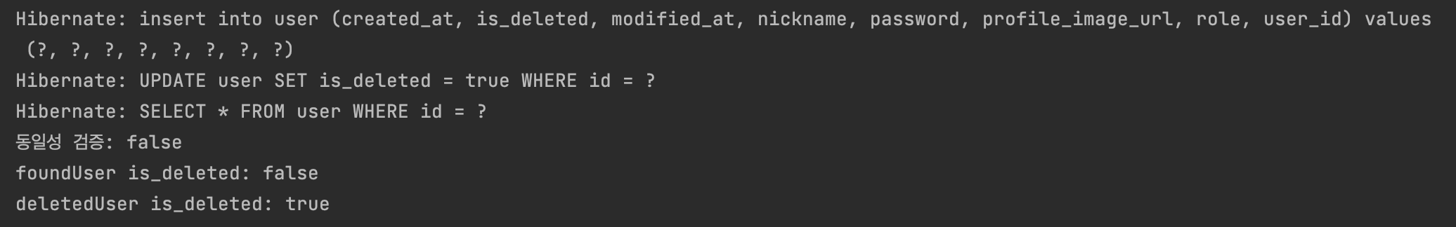 System.out.println("deletedUser is_deleted: " + deletedUser.getIsDeleted());