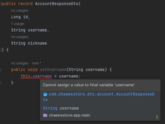 ์๋ฐ์ Record๋ก DTO๋ฅผ ๋ง๋ค์ด๋ณด์ - 2