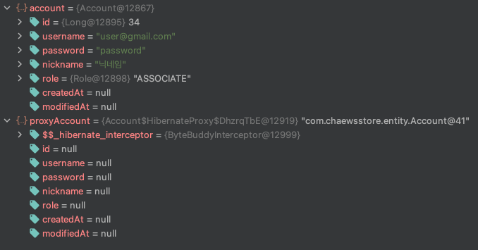 Account proxyAccount = getProxyAccount(account.getId()); // account ID로 가져온 프록시 객체
