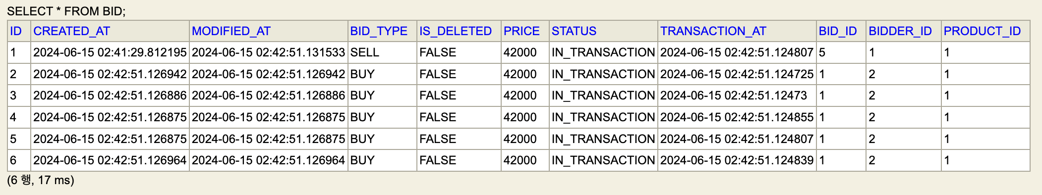 UPDATE bid