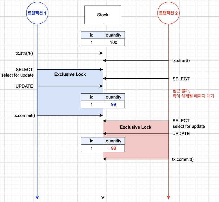 - ๋๊ด์ ๋ฝ๊ณผ๋ ๋ค๋ฅด๊ฒ ํ ์ด๋ธ์ ๋ฝ์ ๊ฑธ์ด ๋ค๋ฅธ ํธ๋์ญ์ ์์ ์์ ์ ๊ทผ์ ๋ชปํ๊ธฐ ๋๋ฌธ์ ๋ฐ์ดํฐ์ ์ผ๊ด์ฑ์ด ๋ณด์ฅ๋๋ค.