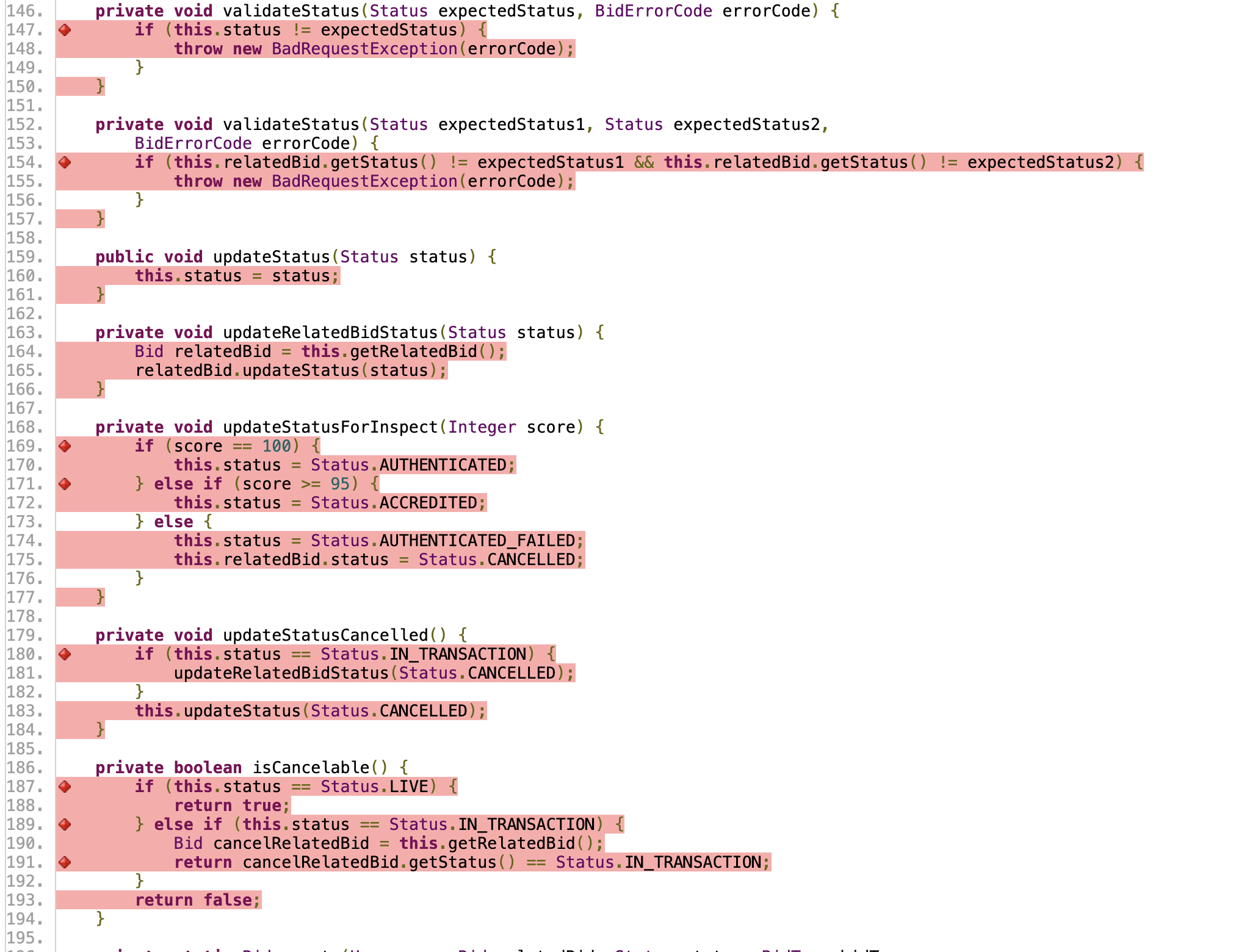 Rule violated for class Bid: lines covered ratio is 0.13, but expected minimum is 0.80