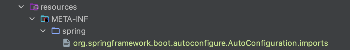 프로젝트의 resources 폴더 하위에 위와 같은 폴더 구조를 만든 후 org.springframework.boot.autoconfigure.AutoConfiguration.imports 이름의 파일을 만들어 아래 내용을 입력해준다.