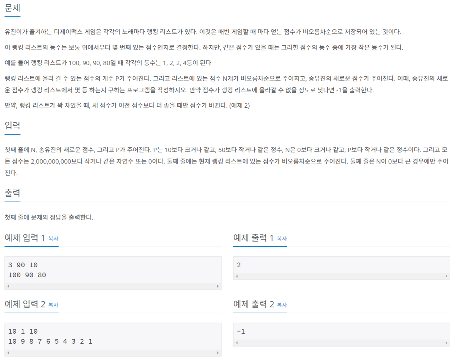 1205번: 등수 구하기