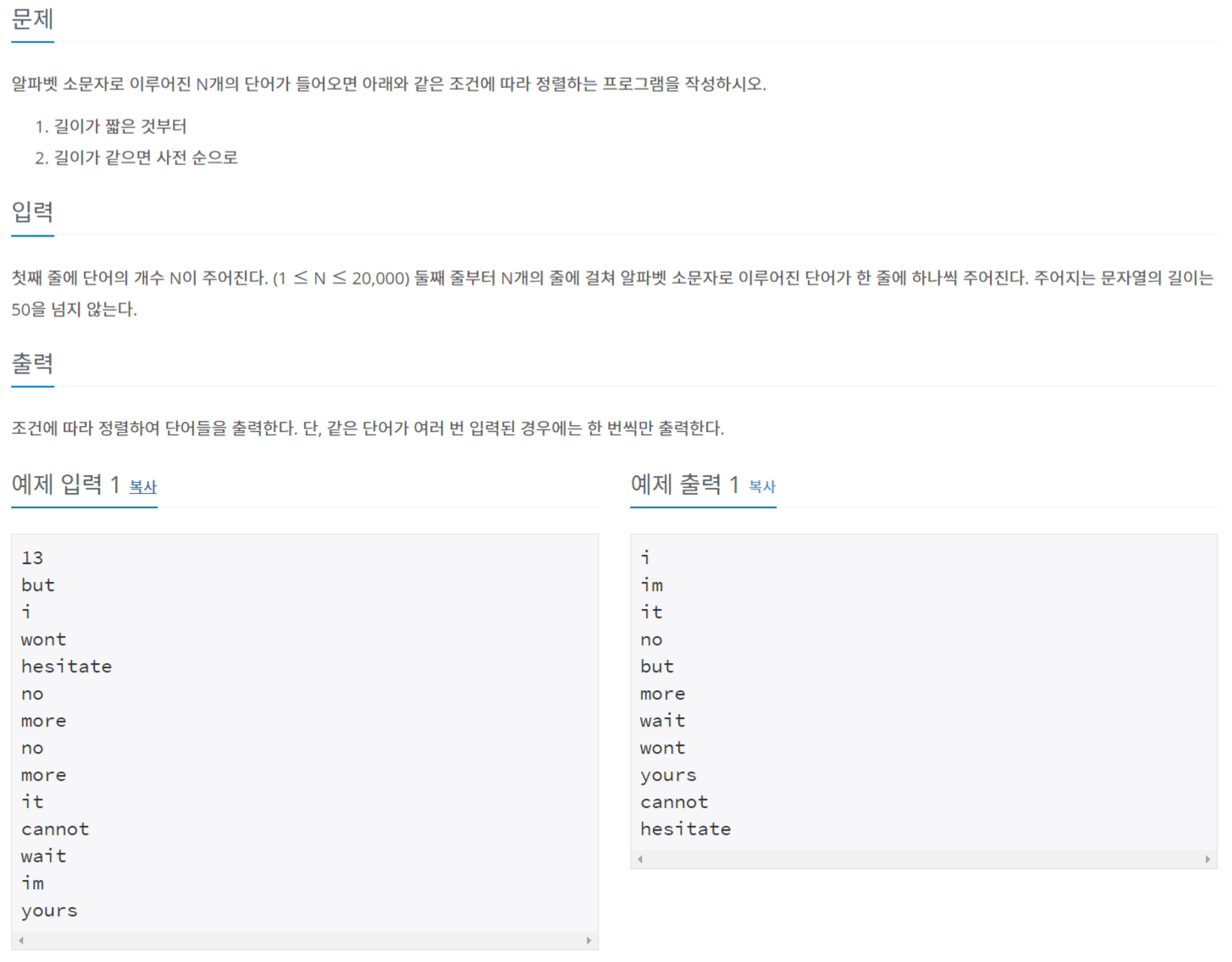 https://www.acmicpc.net/problem/1181